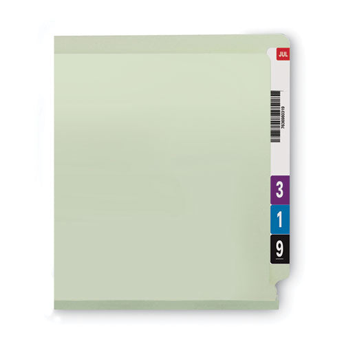 End Tab Pressboard Classification Folders, Two SafeSHIELD Coated Fasteners, 1" Expansion, Legal Size, Gray-Green, 25/Box