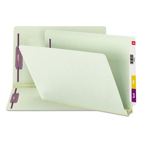End Tab Pressboard Classification Folders, Two SafeSHIELD Coated Fasteners, 2" Expansion, Legal Size, Gray-Green, 25/Box
