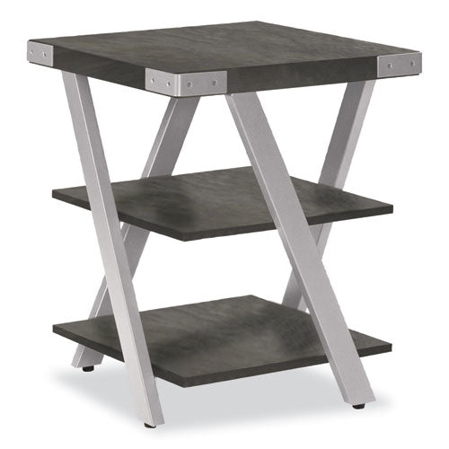 Mirella™ End Table features a contemporary design with slanted metal legs for a one-of-a-kind look. Comes complete with three shelves for storage. Coordinates with Mirella™ Conference and Reception designs for a cohesive and professional look.Note: This is a non-returnable item.