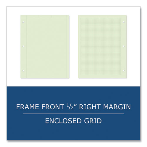 Excellent pad for usage in engineering classes and labs. Smooth writing paper is plain, except for printed outline box on top of sheet, and has 5 square/inch grid layout printed on back of sheet. Back grid shows through to front as dimensional guide for drawings and layouts. 34 pt chipboard backs add stability. Glued along 8.5" (top) edge and 3-hole punched to fit in standard 3-ring binders. Each pad is poly-wrapped.Note: This is a non-returnable item.