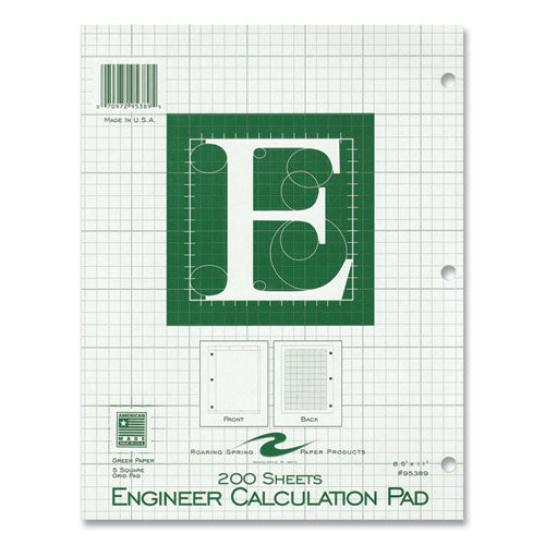 Excellent pad for usage in engineering classes and labs. Smooth writing paper is plain, except for printed outline box on top of sheet, and has 5 square/inch grid layout printed on back of sheet. Back grid shows through to front as dimensional guide for drawings and layouts. 34 pt chipboard backs add stability. Glued along 8.5" (top) edge and 3-hole punched to fit in standard 3-ring binders. Each pad is poly-wrapped.Note: This is a non-returnable item.