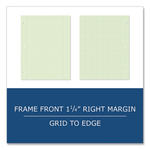 Excellent pad for usage in engineering classes and labs. Smooth writing paper is plain, except for printed outline box on top of sheet, and has 5 square/inch grid layout printed on back of sheet. Back grid shows through to front as dimensional guide for drawings and layouts. 34 pt chipboard backs add stability. Glued along 8.5" (top) edge and 3-hole punched to fit in standard 3-ring binders. Each pad is poly-wrapped.Note: This is a non-returnable item.