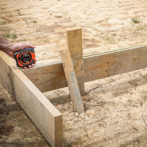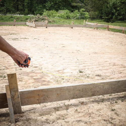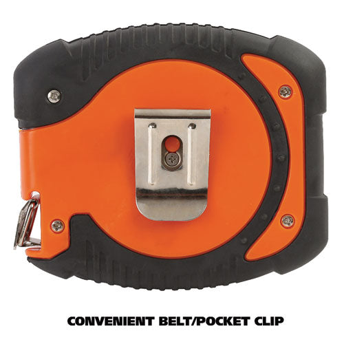 Convenient tape measure features yellow steel blade with easy-to-read black and red markings. High-impact plastic case prevents damage. Convenient rewind handle makes retracting blade easy.