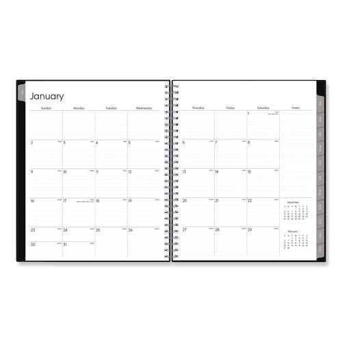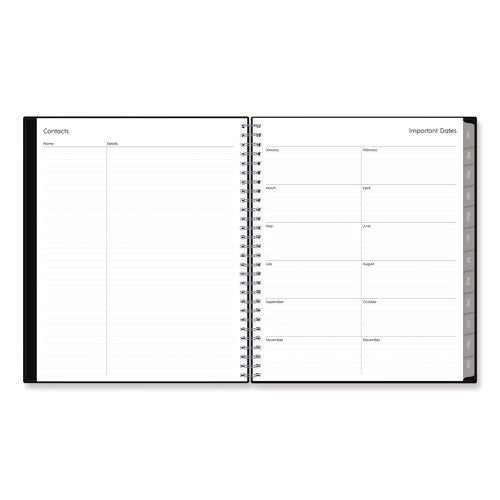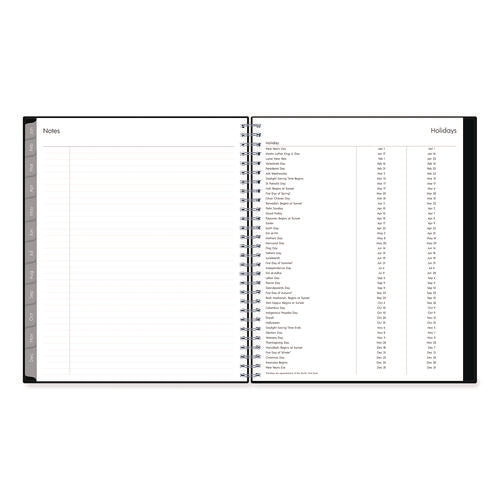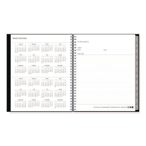 The professional exterior you're looking for, with the interior content you rely on to manage and organize your months. This unique planner offers two-page spreads for each month with ruled daily blocks and a ruled notes column. Durable coated tabs offer easy page turning and access to past, present and future months. Twin-wire binding keeps everything together while eliminating the potential for snags on bags and clothing. Special sections in the back of the book provide plenty of extras for your yearly goals, important contacts, general notes and more. Thick, premium pages throughout minimize the potential for ink-bleed.Note: This is a non-returnable item.
