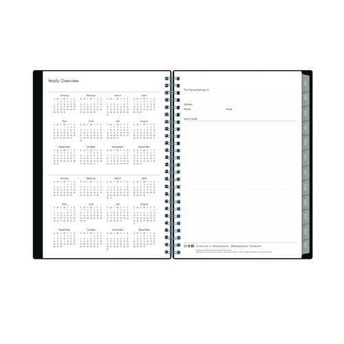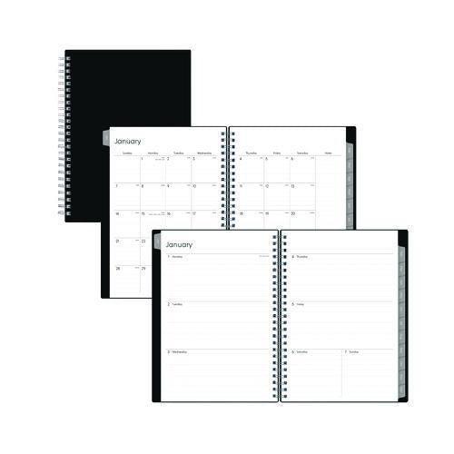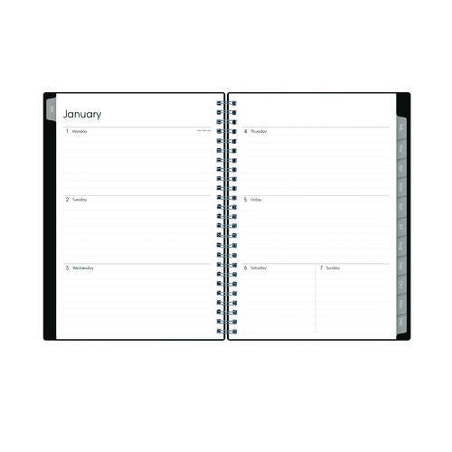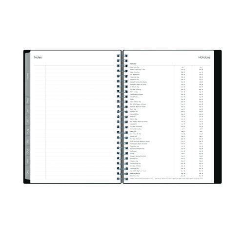 The professional exterior you're looking for, with the interior contents you need. Easily plan out your year and stay on track every month, every week, every day with the Enterprise Weekly/Monthly Notes Planner. Weekly spreads provide plenty of space for your daily schedule throughout the week, Monday through Sunday. Monthly spreads feature a standard daily block format with reference calendars and extra space for notes, giving you everything you need for longer-range planning tasks. Each month's durable, coated tab offers quick access to the past, present and future. Six bonus, non-tabbed, past-month spreads run from July through December to help you with your transition into the new year. A robust ruled-notes section allows you to capture just about everything that needs a special notation. Additional resources in the back of the book help you plan out your year and keep everything on track. Flexible cover and snag-free twin-wire binding work together to ensure that everything stays neatly together. Thick, premium, acid-free pages are printed with soy-based ink.Note: This is a non-returnable item.