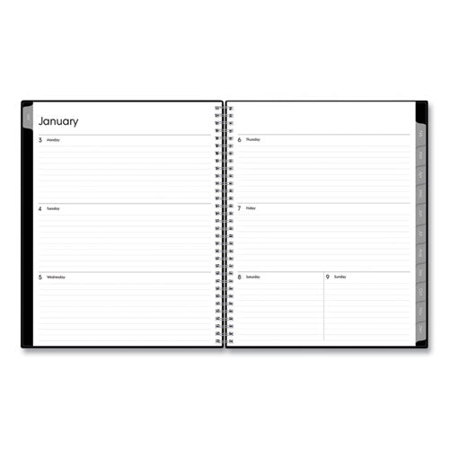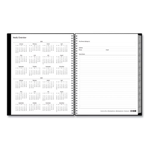 The professional exterior you're looking for, with the interior content you require. Easily plan out your year and stay on track every month, every week, every day along the way with the stylish Enterprise Weekly/Monthly Planner. One week per two-page spreads provide plenty of space for your daily schedule throughout the week, Monday through Sunday. Monthly spreads feature a standard daily block format with reference calendars and space for month-spanning notes, giving you everything you need for longer-range planning tasks. Durable, coated monthly tabs offer quick access to past, present and future months. Additional resources in the back of the book help you plan out your year and keep everything on track. Flexible cover and snag-free twin-wire binding ensure everything stays neatly together. Thick, premium, acid-free pages are printed entirely with soy-based inks.Note: This is a non-returnable item.