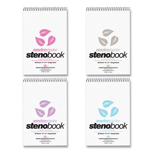 Brighten up your desk with colored paper steno books. Smooth, 15# writing paper is Gregg ruled with a center line, in grey ink. Paper is recycled. Covers are printed on a heavy-duty white board. Wire ends are coil-locked for snag-proof performance.Note: This is a non-returnable item.