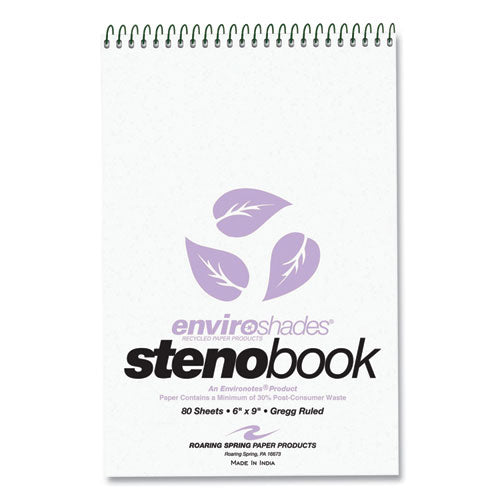 Brighten up your desk with colored paper steno books. Smooth, 15# writing paper is Gregg ruled with a center line, in grey ink. Paper is recycled. Covers are printed on a heavy-duty white board. Wire ends are coil-locked for snag-proof performance.Note: This is a non-returnable item.