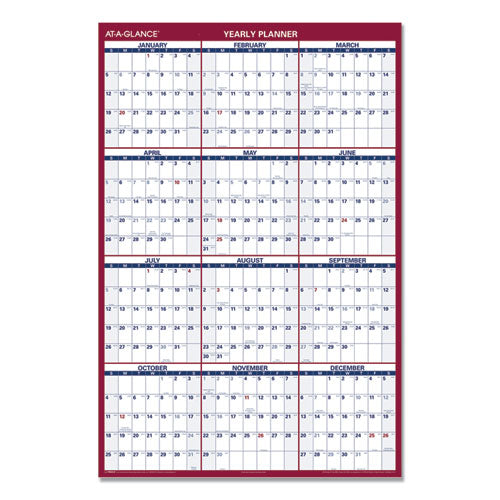 Erasable Vertical/Horizontal Wall Planner, 32 x 48, White/Blue/Red Sheets, 12-Month (Jan to Dec): 2026