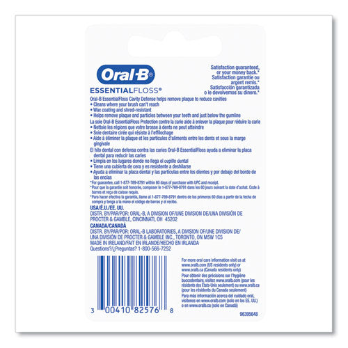Oral-B Essential Floss Cavity Defense helps remove plaque to reduce cavities. Cleans where your brush can't reach. Wax coating and shred resistant.Note: This is a non-returnable item.
