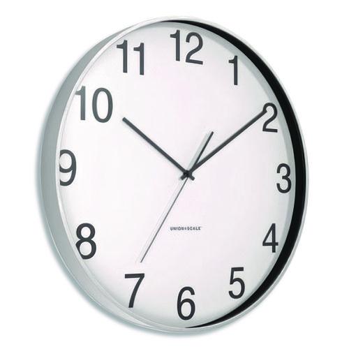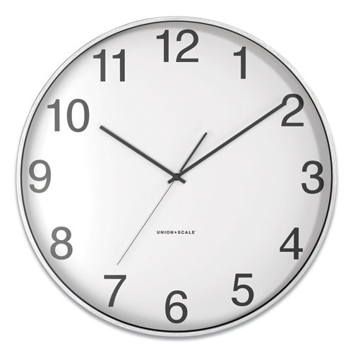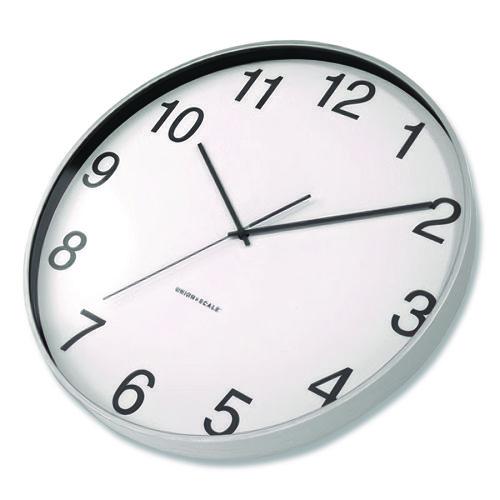 Enhance your decor while you keep track of the time. Classic, round aluminum frame delivers a timeless look that suits a variety of spaces. Three black metal hands, large Arabic numbers and a clear glass lens offer easy readability, while the highly accurate movement ensures reliability.