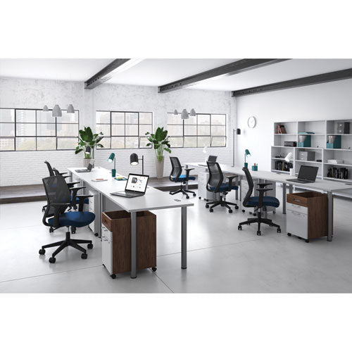 Boost productivity through increased organization. Sharp lines bring contemporary styling to your office. Adjustable shelving lets you create a customized setup. Cable management grommet keeps cords and wires out of sight, making this bookcase great for a phone, fax or other office electronics. Includes wall attachment hardware for safety.Package Includes: Wall Attachment Hardware