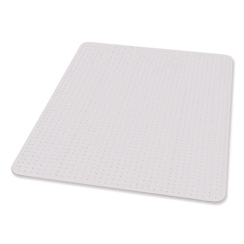 Extend the life of your extra high pile carpet by protecting against chair caster wear and tear. The perfect addition to your workspace, EverLife® chair mats provide a smooth surface that enhances ergonomic comfort by allowing your rolling office chair to move freely. Easy to handle, this chair mat features rounded AnchorBar® cleats (studs) that hold your mat in place and are gentle on carpets and hands (no sharp spikes). EverLife® chair mats are made with durable vinyl that is GREENGUARD Gold Certified for low chemical emissions to promote a healthier workspace. Designed for use on carpeted surfaces only, do not use on hard floors.Note: This is a non-returnable item.