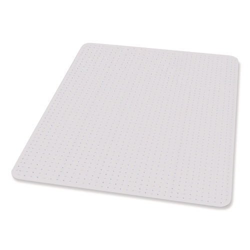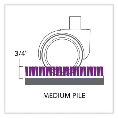 Extend the life of your medium pile carpet by protecting against chair caster wear and tear. The perfect addition to your workspace, EverLife® chair mats provide a smooth surface that enhances ergonomic comfort by allowing your rolling office chair to move freely. Easy to handle, this chair mat features rounded AnchorBar® cleats (studs) that hold your mat in place and are gentle on carpets and hands (no sharp spikes). EverLife® chair mats are made with durable vinyl that is GREENGUARD Gold Certified for low chemical emissions to promote a healthier workspace. Designed for use on carpeted surfaces only, do not use on hard floors.Note: This is a non-returnable item.
