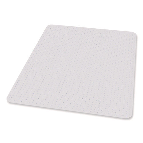 Extend the life of your medium pile carpet by protecting against chair caster wear and tear. The perfect addition to your workspace, EverLife® chair mats provide a smooth surface that enhances ergonomic comfort by allowing your rolling office chair to move freely. Easy to handle, this chair mat features rounded AnchorBar® cleats (studs) that hold your mat in place and are gentle on carpets and hands (no sharp spikes). EverLife® chair mats are made with durable vinyl that is GREENGUARD Gold Certified for low chemical emissions to promote a healthier workspace. Designed for use on carpeted surfaces only, do not use on hard floors.Note: This is a non-returnable item.
