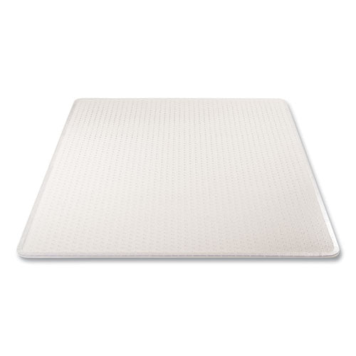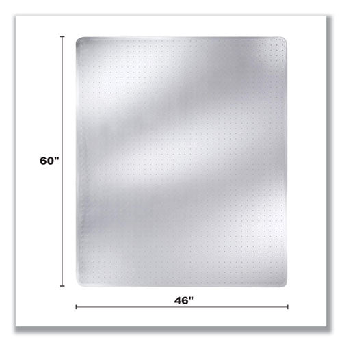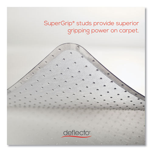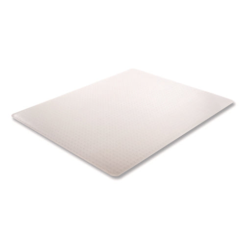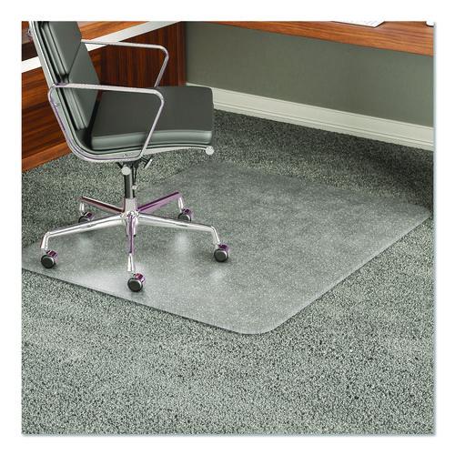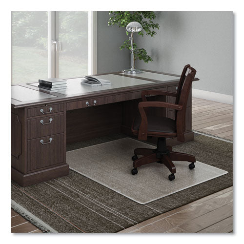 The 0.25" thick ExecuMat is engineered for all-day use on any carpet type, making it an excellent choice for big and tall users and heavier office chairs. Easy-glide rolling surface provides smooth chair movement. Studded design keeps the chair mat from moving while protecting carpets from caster wear, spills and heavy traffic. The ExecuMat features a Free and Clear® formula for exceptional clarity without harsh chemicals. GREENGUARD Gold Certified for low chemical emissions and healthier indoor air.Note: This is a non-returnable item.