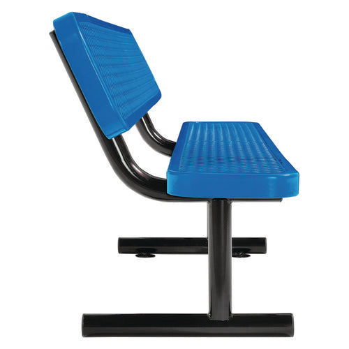 This commercial metal bench is perfect for outdoor spaces such as campuses, parks, and transportation stops, providing comfortable seating for visitors. It is coated with a thermoplastic material and zinc layer that resists corrosion, fading, mold, and vandalism, ensuring that it remains maintenance-free and durable for any outdoor environment.Note: This is a non-returnable item.