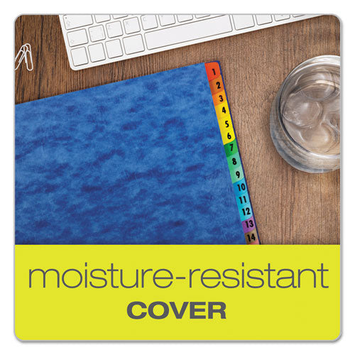 Expandable indexed desk file features preprinted laminated tabs and reinforced, rip-proof tape gusset top and bottom for added strength. Cover resists moisture. Inner dividers with center hole to see papers.