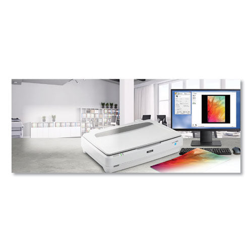 Take large-format photo and graphics scanning to a new level with the Epson Expression® 13000XL. Engineered for demanding applications such as photo archiving and graphic arts, this powerful scanner uses the latest technology to truly capture your originals—a 2400 x 4800 dpi resolution and optical density of 3.8 Dmax allow for clean, sharp images; additionally, Epson MatrixCCD® and ReadyScan® LED technologies plus 48-bit color depth deliver brilliant, vibrant colors with incredible accuracy. The Epson Expression 13000XL brings exceptional versatility to the table, accommodating reflective and other media types up to 12.2" x 17.2". Add on Epson's optional Transparency Unit (sold separately) to easily scan film and other transparent materials up to 12" x 16.5". One-touch color restoration using Easy Photo Fix® technology, batch scanning, and powerful LaserSoft Imaging SilverFast AI scanning and image processing software help enhance your productivity and expand the limits of what a professional scanner can do.Package Includes: Hi-Speed USB 2.0 Cable; LaserSoft Imaging SilverFast AI Software; Power Cable; Start Here PosterNote: This is a non-returnable item.