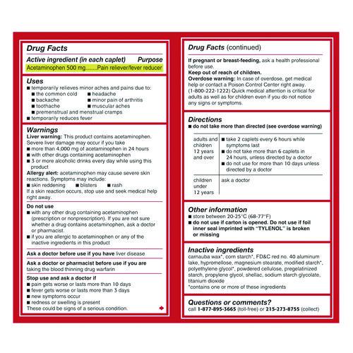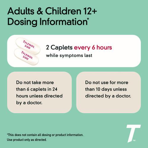 With 500 mg acetaminophen to effectively reduce fevers and relieve aches and pain. Powerful caplets temporarily lower fevers and alleviate headache, arthritis pain, cramps, and toothache. Keep several boxes at home or in the office so fast-acting pain relief is always available to keep you going.