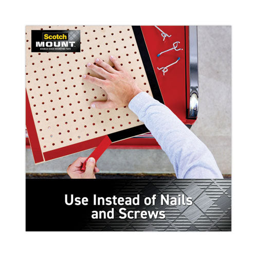 Equipped with our powerful permanent adhesive, this double-sided tape defies gravity, holding an item up to 30 pounds. It's weather resistant for a long-lasting bond, indoors and outdoors. So, whether you're mounting shelves in your new apartment, or adding wall organization to the garage, Scotch-Mount™ Extreme Double-Sided Mounting Tape does the job quickly, easily and without the hassle of tools.