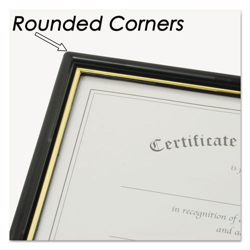 EZ Mount Document Frame with Trim Accent and Plastic Face, Plastic, 8.5 x 11 Insert, Black/Gold