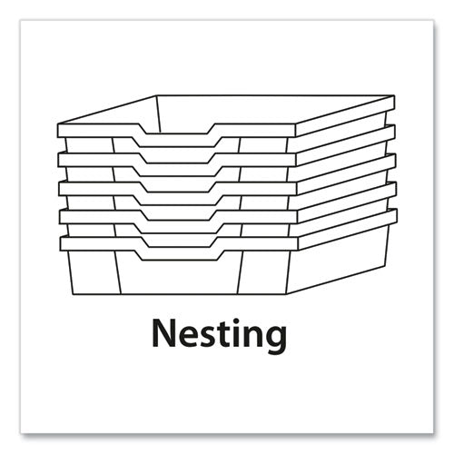 Iconic, Worlddidac award-winning F1 Shallow Trays are found in learning environments all over the world. Made of fully recyclable materials, each tray is molded to a standardized size for seamless integration into Gratnells Storage Frames and Trolleys, so you can easily reconfigure your bins and resource areas to the unit or project at hand. With enough foresight, you can even color-code accordingly. Loved by teachers and students alike, these strong, rigid bins are all BSI approved for heavy educational use. Semi-fire-retardant (0.22 mm per minute), anti-static, talc-filled polypropylene construction ensures high-resistance to a variety of chemicals and contaminants, making it a superior choice over ABS in almost any environment, doubly so in science labs as well as art, shop and electronics classrooms. Whether it's art or science-lab supplies, whether it's worksheets or robotics kits, there's a tray to meet your needs. Stackable and nestable with built-in carry handles, these bins are also compatible with a variety of available dividers and lids (lids and dividers sold separately).Note: This is a non-returnable item.