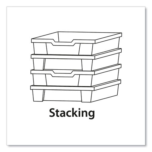 Iconic, Worlddidac award-winning F1 Shallow Trays are found in learning environments all over the world. Made of fully recyclable materials, each tray is molded to a standardized size for seamless integration into Gratnells Storage Frames and Trolleys, so you can easily reconfigure your bins and resource areas to the unit or project at hand. With enough foresight, you can even color-code accordingly. Loved by teachers and students alike, these strong, rigid bins are all BSI approved for heavy educational use. Semi-fire-retardant (0.22 mm per minute), anti-static, talc-filled polypropylene construction ensures high-resistance to a variety of chemicals and contaminants, making it a superior choice over ABS in almost any environment, doubly so in science labs as well as art, shop and electronics classrooms. Whether it's art or science-lab supplies, whether it's worksheets or robotics kits, there's a tray to meet your needs. Stackable and nestable with built-in carry handles, these bins are also compatible with a variety of available dividers and lids (lids and dividers sold separately).Note: This is a non-returnable item.