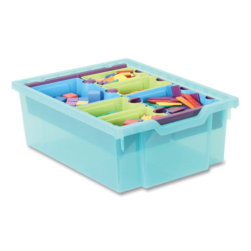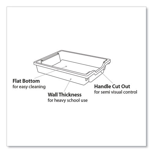 Iconic, Worlddidac award-winning F2 Deep Trays with Antimicrobial Product Protection are made of fully recyclable materials, and each tray is molded to a standardized size for seamless integration into Gratnells Storage Frames and Trolleys. Quickly and easily reconfigure your bins and resource areas to the task at hand. With enough foresight, you can even color-code accordingly. Loved equally by teachers, students and school nurses, these strong, rigid bins are all BSI approved for heavy educational use. Semi-fire-retardant (0.22 mm per minute), talc-filled polypropylene construction ensures high-resistance to a variety of chemicals and contaminants, making it a superior choice over ABS in almost any environment, doubly so in science labs as well as art, shop and electronics classrooms. These trays are also treated with both BioCote® antimicrobial technology to prevent the growth of bacteria and mold as well as a reliable anti-static additive to minimize the potential for dust-attraction and static electricity discharges. Whether it's science-lab or first-aid supplies, whether it's electronic components or crafting materials, there's a tray to meet your needs. Stackable and nestable with built-in carry handles, these bins are also compatible with a variety of available dividers and lids (lids and dividers sold separately).Note: This is a non-returnable item.