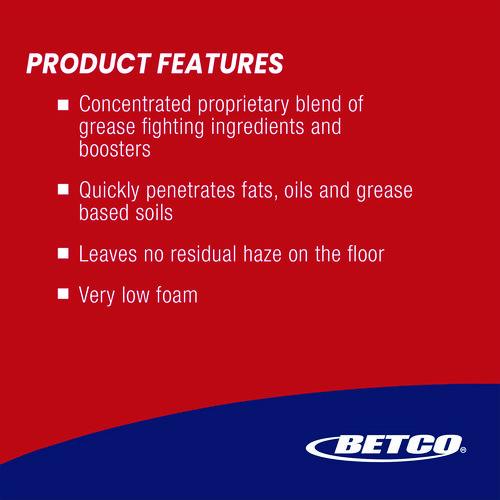 This low foaming degreaser utilizes Aqua-Transolvency™ technology to remove the most stubborn rubber tire marks, grease, and oil from concrete floors and other surfaces. Perfect for use in automatic floor scrubbers and in mop buckets. Requires no pre-spray on rubber tire marks. Leaves no film on the floor.Note: This is a non-returnable item.