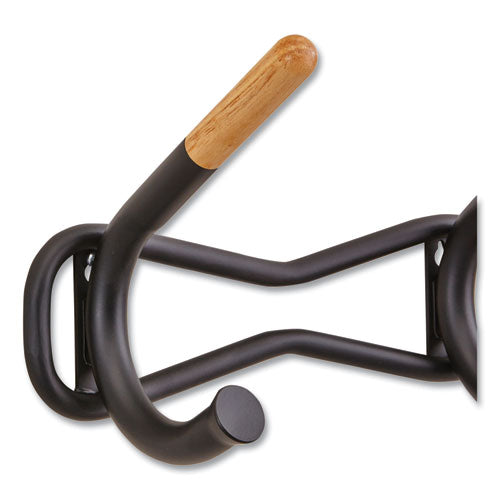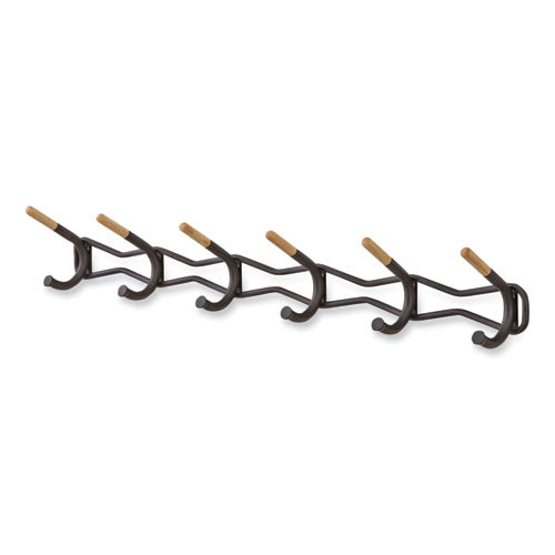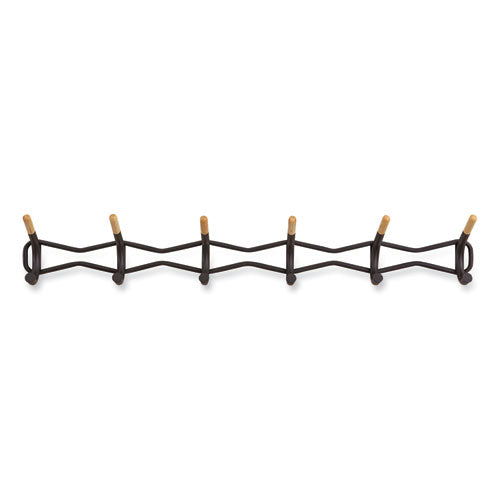Welcome family, friends and other guests to come in, hang up their jackets and stay a while in your home or office with this stylish wall-mounted coat rack. Rounded-edged metal and wood hooks treat your parkas, pea coats and suit jackets with kindness whenever you need to hang them up. Sturdy powder-coated steel construction helps ensure this stylish, convenient coat rack remains your entryway greeter for many seasons to come. Includes mounting hardware.Note: This is a non-returnable item.