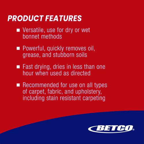 Surface soils on carpet are unsightly and can lead to permanent damage. Bonnet cleaning provides an advantage with rapid dry time. This formulation dries in less than one hour, is nonflammable, evaporates fast, and cleans a wide variety of soils while leaving no residue.
