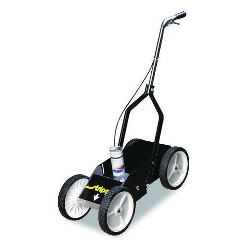 The Champion Sports Striping Machine offers the best in stability and precision stripe makers on the field. The sprayer accurately dispenses paint from the aerosol onto grassy surfaces creating 2" to 4" lines, adjusting the line marker to your preference. The 10" easy rolling wheels allows for easy mobility and windscreen prevents paint from spreading outside. Control the paint/spray by using the fingertip on/off lever. The Field Striping Machine is big enough to store 12 cans for future use in its large compartment. Best of all, the striping machine is maintenance free, where no clean-up is necessary.Note: This is a non-returnable item.