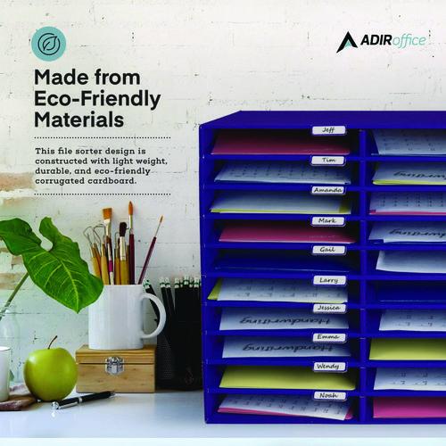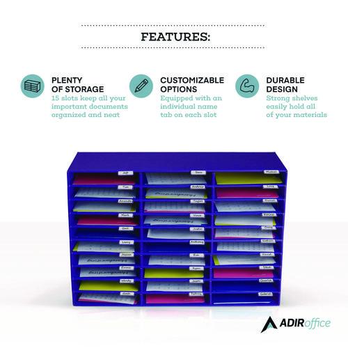 Maintain a clean and organized environment in your classroom or office with the AdirOffice Classroom File/Literature Organizer. This compact yet efficient storage solution features multiple open slots designed to neatly store papers and folders. Each slot offers ample room, allowing you to easily slide in stacks of papers, magazines, notebooks, or slim binders without occupying excessive space. Constructed from cardboard, the sturdy cabinet boasts a durable design with strong shelves that can effortlessly bear the weight of your items. Additionally, you can easily assign slots based on name, project, or year by using labeled stickers on the innovative slot tabs, ensuring a well-structured and easily navigable filing system.Note: This is a non-returnable item.