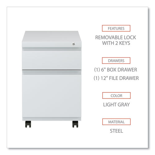 File Pedestal with Full-Length Pull, Left or Right, 2-Drawers: Box/File, Legal/Letter, Light Gray, 14.96" x 19.29" x 21.65"