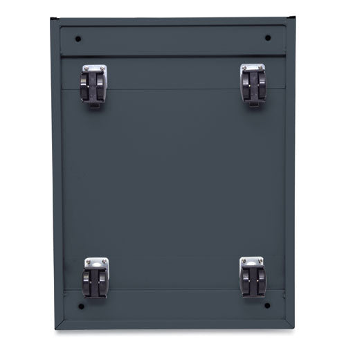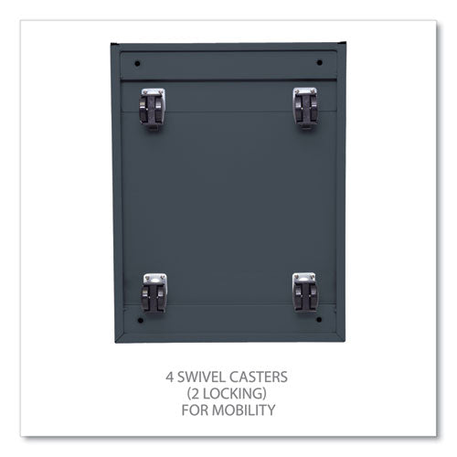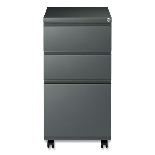 Get organized with a high-sided file cabinet with drawers that accommodate letter or legal-sized hanging files. Steel ball bearing telescoping slide suspension helps drawers glide smoothly and with ease. Equipped with four casters, two locking, two non-locking. Full-length pull permits easy opening. Single key core removable lock with two keys.