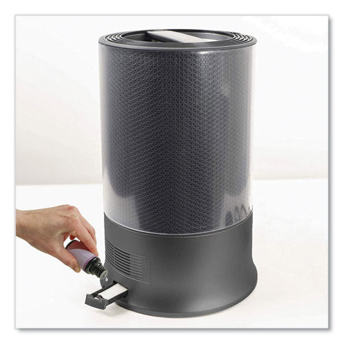 The Honeywell Designer Series Cool Mist Humidifier utilizes a filter free and ultra-quiet approach to releasing ultrasonic cool mist into the surrounding air. Adjustable mist controls will allow owners to manually select their preferred mist output settings via a textured metal control wheel. The illuminated water window includes three settings (bright/dim/off). These lighting features and a wide tank opening allow for a seamless cleaning and refilling process.
