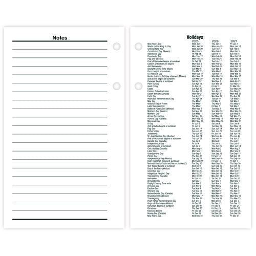 Financial-based dates in days, weeks and months. Features future date determination in days, weeks and months on left page with notes space on right. One day per two-page spread, Saturday/Sunday combined. Past, current and future months reference. Fits standard, 17-Style two-ring bases.Note: This is a non-returnable item.