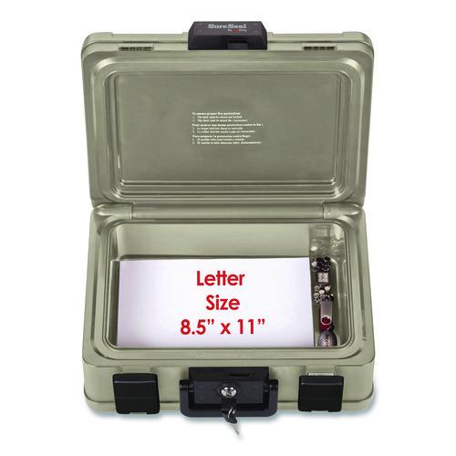 Designed to meet the security needs of today's consumer by protecting CDs/DVDs, flash drives, portable hard drives and other valuables from fire and water damage. Accommodates letter- and legal-size documents. Dual compression latches and handle. Waterproof for two hours.Package Includes: (2) Keys