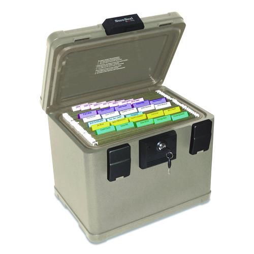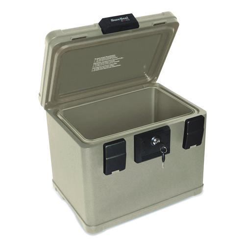 Designed to meet the security needs of today's consumer by protecting CDs/DVDs, flash drives, portable hard drives and other valuables from fire and water damage. Accommodates letter- and legal-size documents. Dual compression latches and handle. Waterproof for two hours.Package Includes: (2) Keys