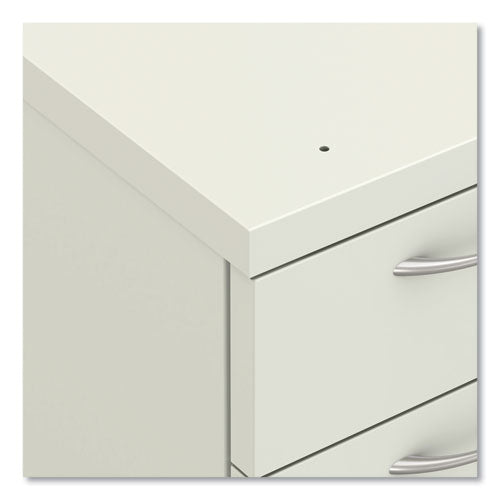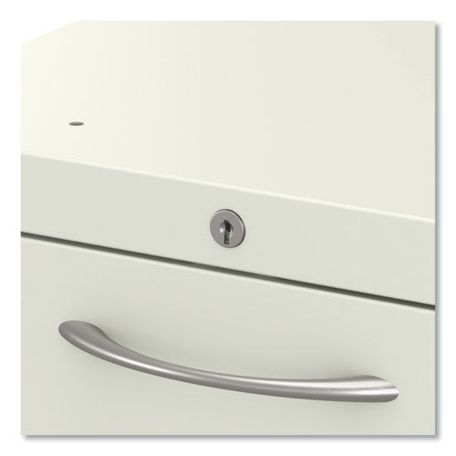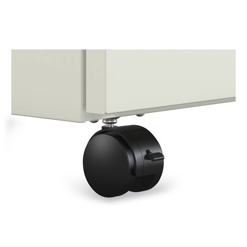 Steel ball bearing suspension; full extension on file drawer, 90% extension on box drawers. High-sided file drawer allows front-to-back letter-size filing and includes follower block and crossrail. Counterweight inhibits tipping when opening more than one drawer. Fits under 29.5" high workstations. Fixed front casters and swivel back casters for easy mobility. "One Key" core removable lock makes re-keying quick and easy.Note: This is a non-returnable item.