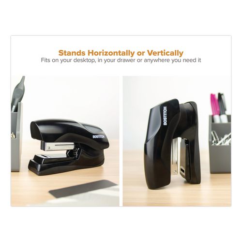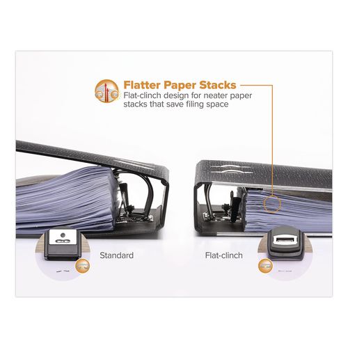 This flat clinch stapler features a half strip design while retaining all the stapling power of a full-sized stapler. It can staple up to 40 sheets of paper at once! Most standard staplers can only handle 20 sheets at a time. This unit also features a convenient flat clinch stapling style. Flat clinch staplers allow documents to lay in flatter, neater stacks. You can keep your papers organized and your desktop clean with the help of this compact stapler. Additionally, each unit opens a full 180° for bulletin board use and features a non-skid, rubber base. Just add your standard staples and you're ready to tackle all the stapling and filing projects ahead.