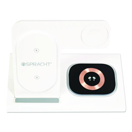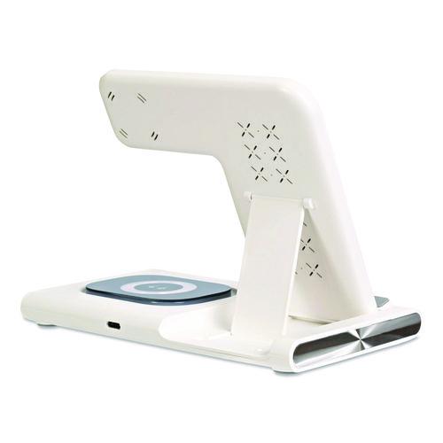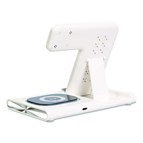 Charge up to three devices at once! Tidy up your space and eliminate cable clutter by charging your phone, watch and earbud case simultaneously. With our included fast charging adapter powered by the Qualcomm QC 3.0 chip, you'll experience lightning-fast charging speeds. The stand features a magnetic holder to keep your phone and watch securely in place and even has a light in the base for added convenience. This high-quality charging stand is perfect for your desk or usual charging area, combining functionality with sleek design. Folding design makes it convenient for travel!Package Includes: USB-C Cable; User Guide