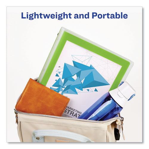 Prepare your reports so they're ready to swing into action, dressed to impress. The Flexi-View Binder presents reports in flexible, durable plastic that keeps your pages looking neat and presentable. A colorful preprinted border on the front cover frames a translucent window designed to show off your customized title page, and customizing is easy when you use free designs and templates from Avery® Design & Print. Durable, lightweight and easy to carry. Non-stick poly material prevents ink and toner transfer. This binder will ensure that your presentation stays securely bound and ready to wow.