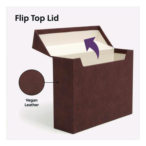 Flip Top File Box, Letter Files, 13 x 3.7 x 10, Saddle