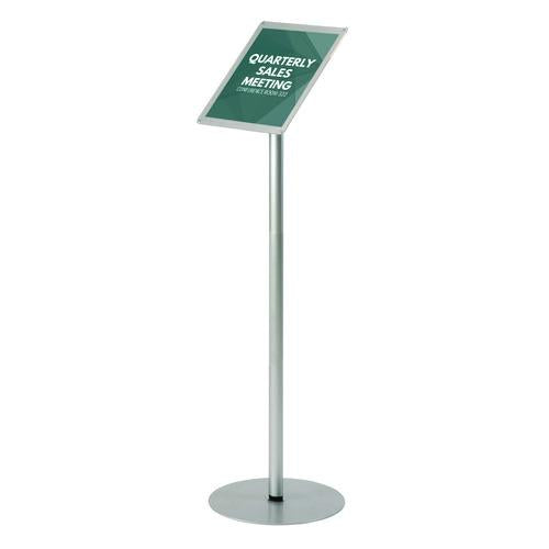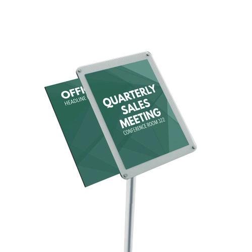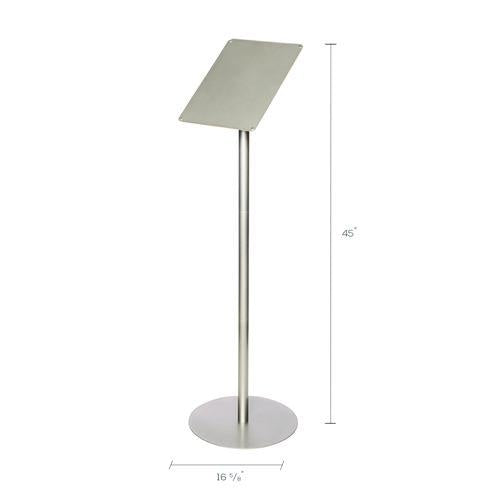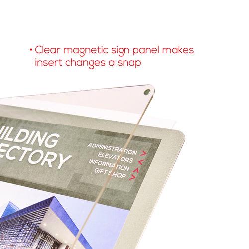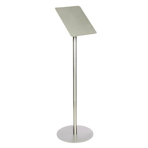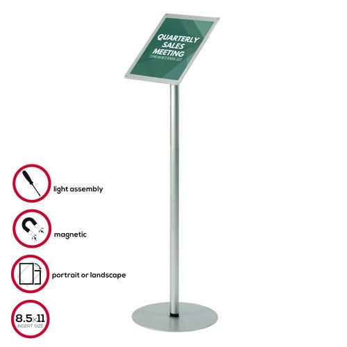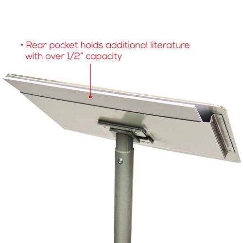 Sign and literature floor stand with dual-position bracket allowing sign to be displayed either portrait or landscape. Rear pocket holds additional literature with over 1/2" capacity.Package Includes: Assembly InstructionsNote: This is a non-returnable item.