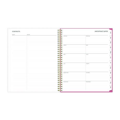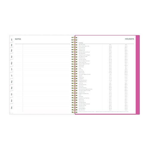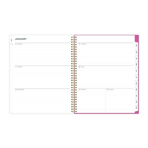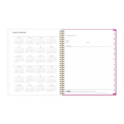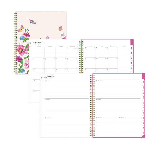 Frame your plans with elegance. Butterflies flit across this beautiful Fly By cover and bring peace to your busy schedule with its graceful pink and blue florals on a cream background. Two-page-per-week spread features lined daily blocks. Monthly view per two-page spread includes a Notes section for important projects. Monthly tabs are coated for durability. Durable, frosted flexible front cover. Twin-wire binding offers easy page turning. Includes pages for Yearly Goals, Contacts, Reference Calendars, and extra Notes pages. Thick, premium quality pages reduce ink bleed-through. Includes six bonus past monthly views for easy yearly transition (July-Dec).Note: This is a non-returnable item.