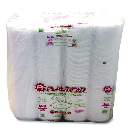 Foam Hinged Lid Containers, 6 x 6 x 3, White, Foam, 500/Carton