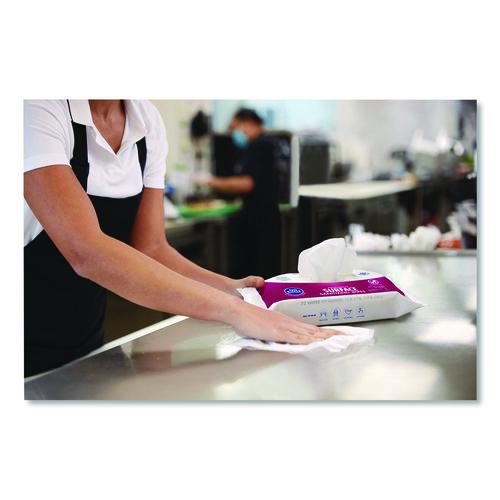 Formulated for food-contact surfaces with no rinse required, simplifying the cleaning and sanitizing process to meet foodservice needs. Kills 99.9% of viruses and bacteria. Meets EPA 60-second sanitization. Sanitizes, cleans, and disinfects. Convenient, ready to use wipes require no mixing.