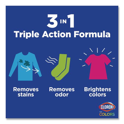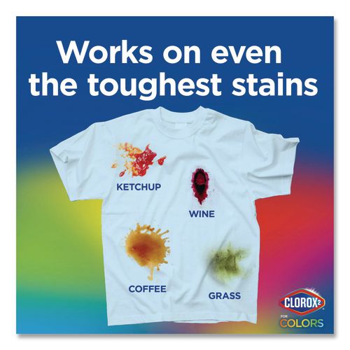 Clorox 2® for Colors Stain Remover and Laundry Additive attacks your toughest stains, including food, grass, blood, set in stains and more. This fast and powerful stain remover activates instantly and even removes 3x more stains vs. the leading value detergent alone. Safe for use in standard and HE washers, this versatile 3-in-1 formula not only removes stains and odors, but also brightens colors and whites. Clorox 2® for Colors Stain Remover and Laundry Additive helps freshen your clothes with a clean scent and is a bleach free formula that is safe for fabrics and colors when used as directed.Note: This is a non-returnable item.
